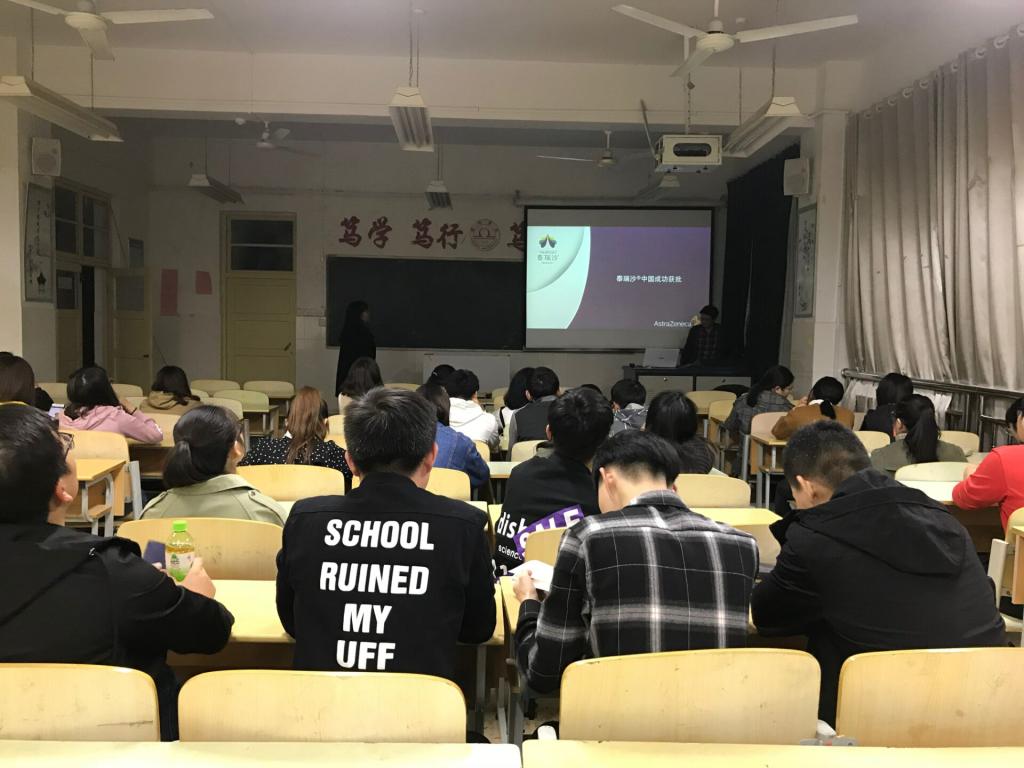 此次专场招聘会提供医药代表、研发人员、技术员等多个岗位。该公司代表向同学们介绍了公司的相关内容。通过招聘宣讲和面试,有部分同学与阿斯利康制药有限公司达成了就业意向。