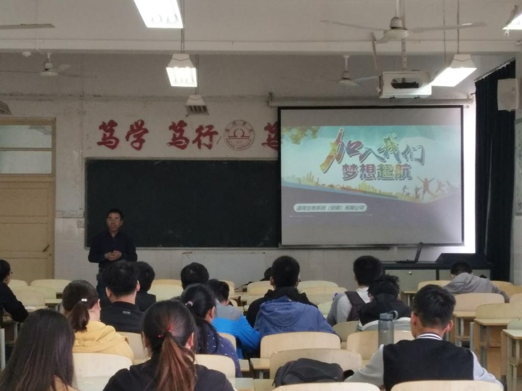 此次专场招聘会提供实验室研究员、区域销售经理、实验室文员等多个岗位。该公司代表向同学们介绍了公司的相关内容。通过招聘宣讲和面试,有部分同学与通用生物系统(安徽)有限公司达成了就业意向。
