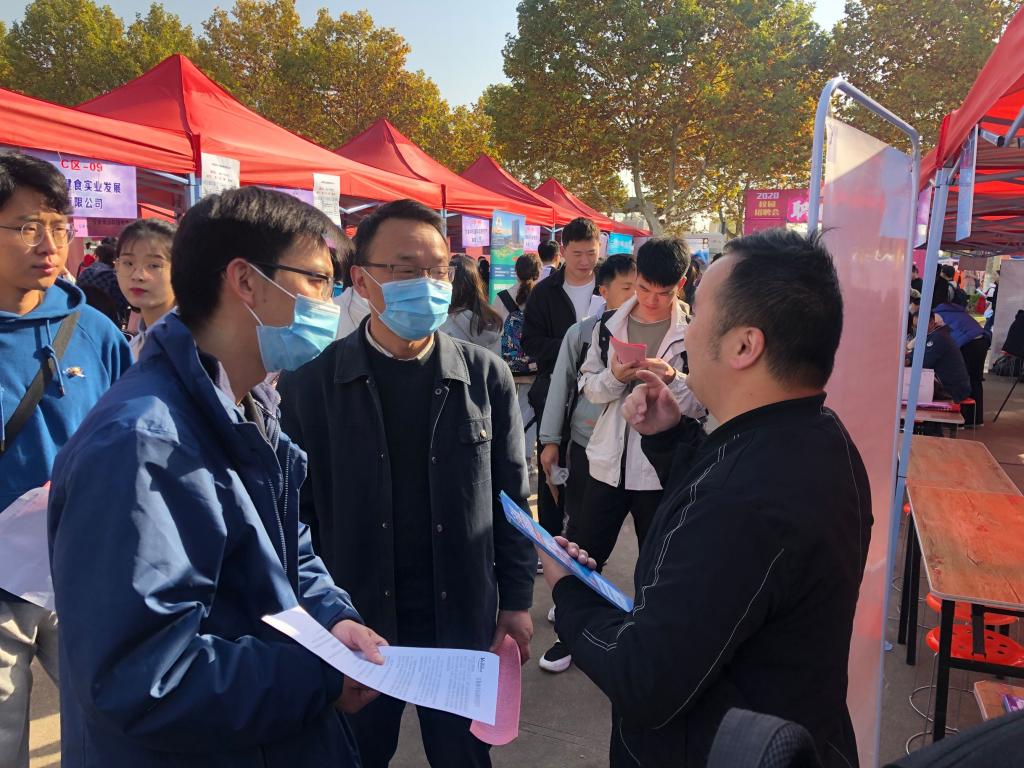 为帮助2021届毕业生顺利实现实习带动就业,提高就业质量,10月23日上午,宿州学院在东校区举办了“宿州学院2021届毕业生大型供需见面会。”由伟德国际1946源自英国甘守伟老师负责联系的近十几家省内外企业在人才交流会现场设置招聘点,伟德国际1946源自英国党总支书记赵亮与多家企业人事负责人及求职学生深入交流。
