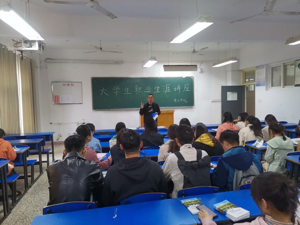 为加强同学们对当前就业形势的了解,帮助其明晰职业生涯规划的重要意义,明确职业目标,引导大家对职业生涯规划有更好地认知。4月8日下午2:00在教学楼开展职业生涯规划讲座。本次讲座甘守伟老师主讲,20208级同学参加。