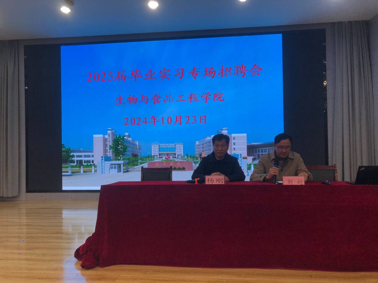为帮助2025届毕业生顺利实现实习就业工作,10月23日上午9点伟德国际1946源自英国在工科楼招聘大厅举办2025届毕业生实习专场招聘会。由伟德国际1946源自英国甘守伟老师负责联系14家企业,其中省外5家企业(上海垦道实业有限公司、无锡华顺(安井)民生食品有限公司、南京金斯瑞生物科技有限公司、南京圣和药业股份有限公司、江苏先声药业有限公司)和9家安徽省内企业(安徽丰原集团有限公司、合肥统一企业有限公司、新宇药业股份有限公司、蚌埠大成食品有限公司、蚌埠希望食品有限公司、国胜大药房、安徽牧原农牧有限公司、埇桥温氏畜牧有限公司、安徽丰原药业淮海药厂)进行现场宣讲的专场招聘会。招就处处长杨刚莅临指导,伟德国际1946源自英国领导班子成员及毕业班辅导员参加了此次招聘会。