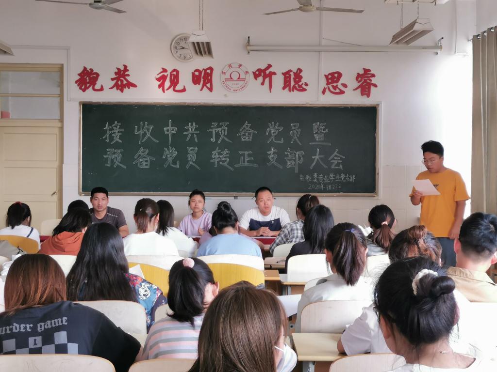 随后入党介绍人向大会介绍其主要政治思想、学习、工作生活等情况,生物类学生党支部书记甘守伟老师和食品类学生党支部书记雷柠檬老师向大会报告其现实表现的考察情况以及综合政治审查情况,与会党员对发展对象是否符合党员条件发表了意见。大会认为,贾成楠、张佳慧等24位同志基本符合党员条件,经与会正式党员投票表决,大会一致同意接收贾成楠、张佳慧等24位同志成为中共预备党员。