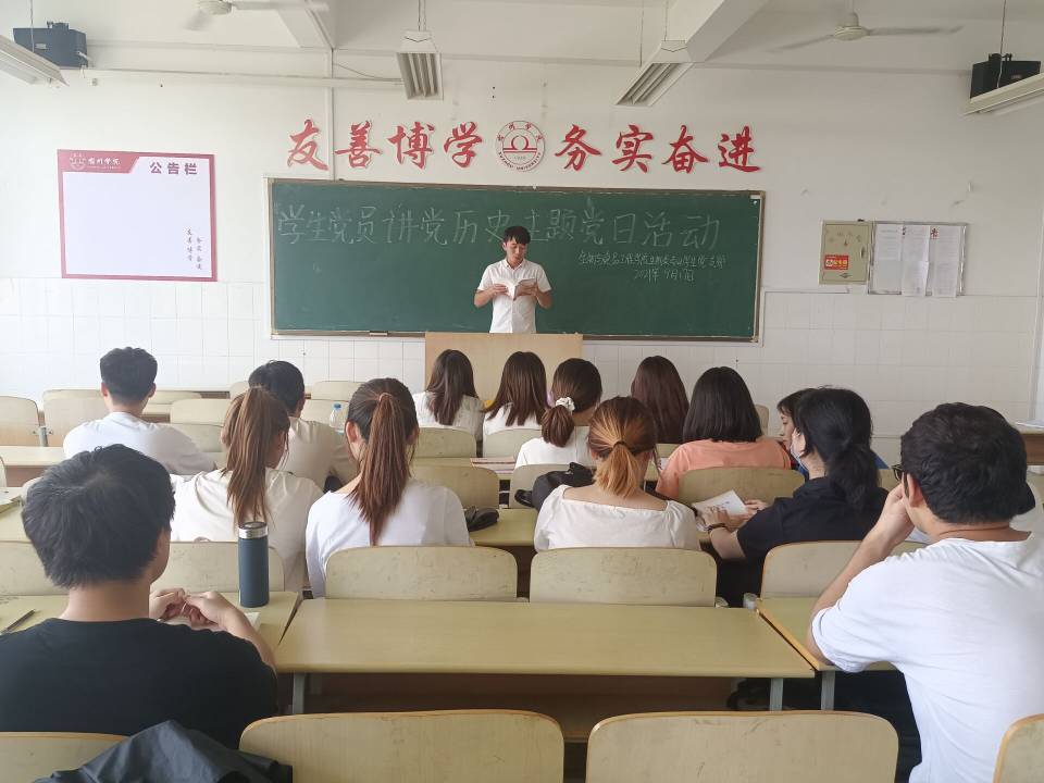 活动上,分别由四位学生党员为大家讲述了井冈山革命根据地的建立、遵义会议实现的伟大转折、建设中国特色社会主义历程、现代化建设新阶段迈过去的难关等关于党的历史。