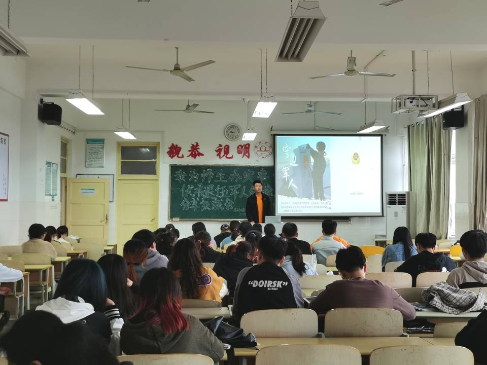 怀揣初心报国志,身着戎装立榜样。从校园到部队,从战士到学子,努力拼搏的青春姿态在不同的舞台上熠熠生辉……退伍复学学生梅浩然同志分享了自己的军旅历程。梅浩然说到,当兵是经历也是成长,服役的经历将深刻影响激励他的生活,使他终身受益。同学们在听过他的经历后,都纷纷表示在以后的工作学习生活中要不懈努力、力争上游、永不服输,也成为了他的精神支柱。