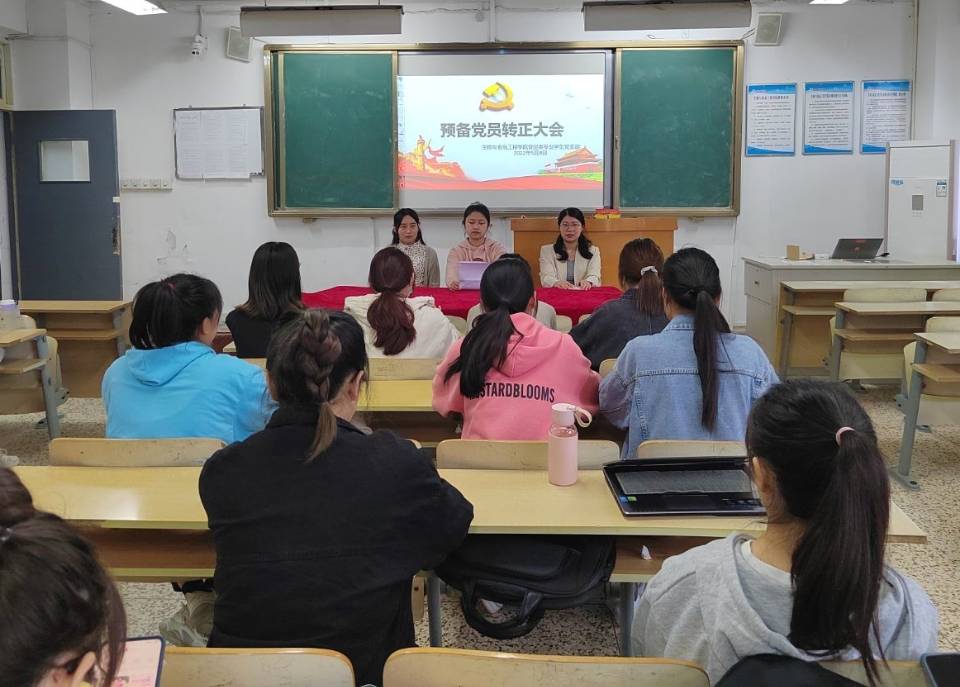 会议开始,首先由两位学生党支部书记宣读本次会议的预备党员转正的人员名单,预备党员相继宣读转正申请书,汇报预备期中自己在思想,生活,工作等各方面的情况。随后由支部正式党员进行举手表决,各位预备党员精神抖擞,按照流程有条不紊的进行本次支部大会。经过投票表决,28位预备党员均全票通过党员决议,成为中共正式党员,并一同宣读入党誓词。两位学生党支部书记向各位转正的党员给予肯定和表示祝贺。