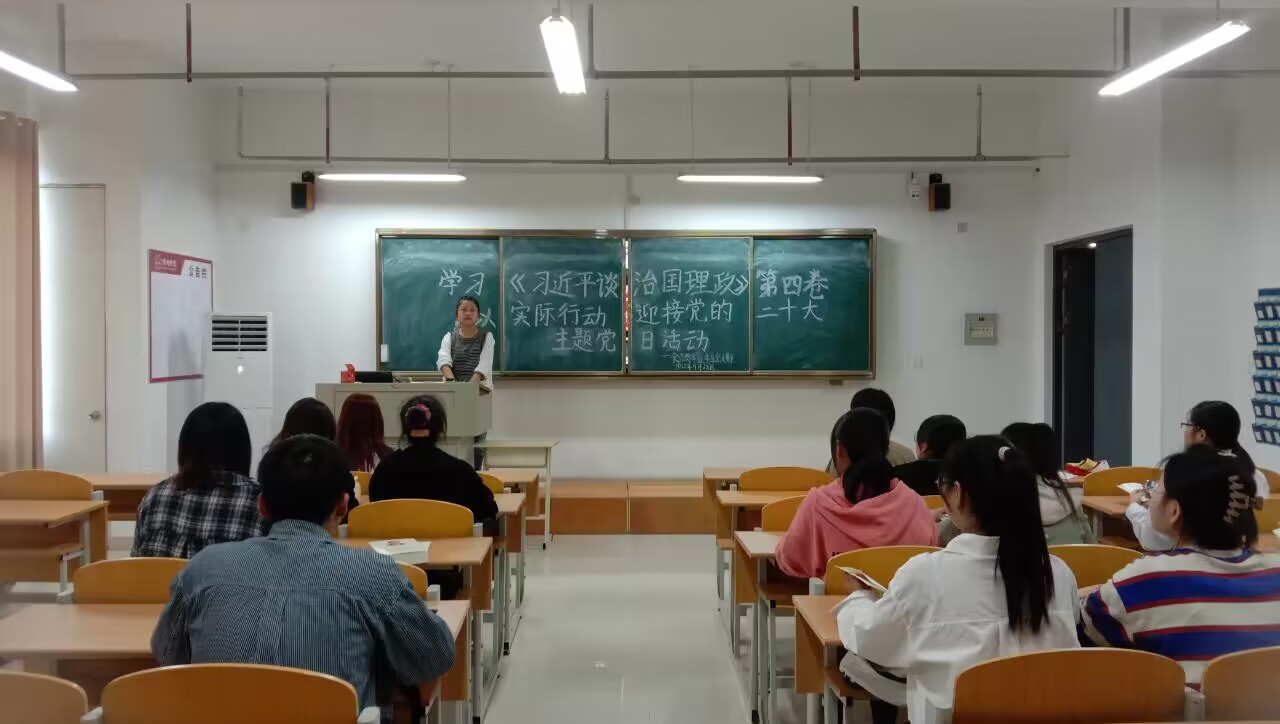 首先,分别由两位学生党支部书记甘守伟老师和雷柠檬老师带领全体学生党员学习《习近平谈治国理政》第四卷,要求全体学生党员要深刻认识学习《习近平谈治国理政》第四卷的重大意义,深入领会习近平新时代中国特色社会主义思想,自觉做习近平新时代中国特色社会主义思想的坚定信仰者和忠实实践者。活动中,大家开展了新党员入党宣,老党员重温入党誓词,誓观看爱国主义教育电影等活动,让学生党员们从中得到了启发和反思,使学习的过程成为锤炼党性的过程。