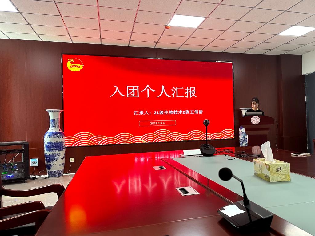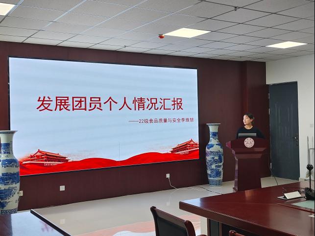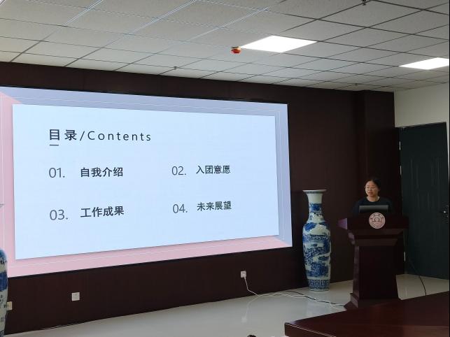 本次团员发展工作由学生个人提出申请,经班级辅导员推荐,学生现场进行PPT汇报等环节进行评选。7位入团积极分子依次上台进行ppt汇报,个人汇报主要围绕对共青团的认识、自身基本情况、学习成绩、社会实践、所获荣誉等内容进行。