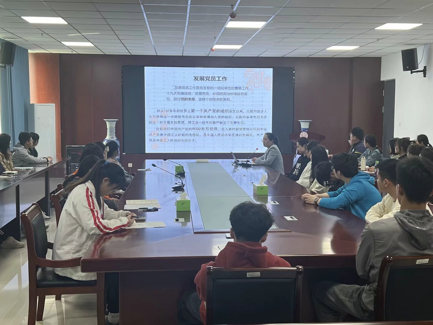 开班仪式上,党委书记赵亮,副书记李娜和学生支部书记雷柠檬分别以《聚焦党的二十届二中全会及习近平新时代中国特色社会主义思想》、《入党积极分子入党动机的分析》、《发展党员流程和要求》为题进行专题讲座。每个讲座都结合当下时代背景生动地向积极分子讲解了新时代中国共产党起到的伟大作用,每个专题内容丰富,思想教育意义重大,让参加此次培训的入党积极分子得到了极大的提升。