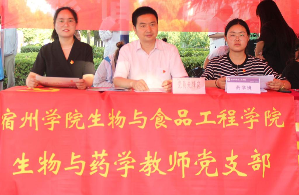为充分发挥党员先锋模范带头作用,在志愿服务中践行初心使命、体现责任担当,推动基层党组织开展“立足岗位作贡献”活动,更好地为新生服务。2023年9月7日,新生开学报到之际,生物与药学专业教研室教师支部成立党员先锋队开展“以心迎新,服务先行”主题党日活动,助力本次迎新工作。党员教师分工协作,分为学籍注册组、车站接车组、现场咨询组及后勤保障组等。