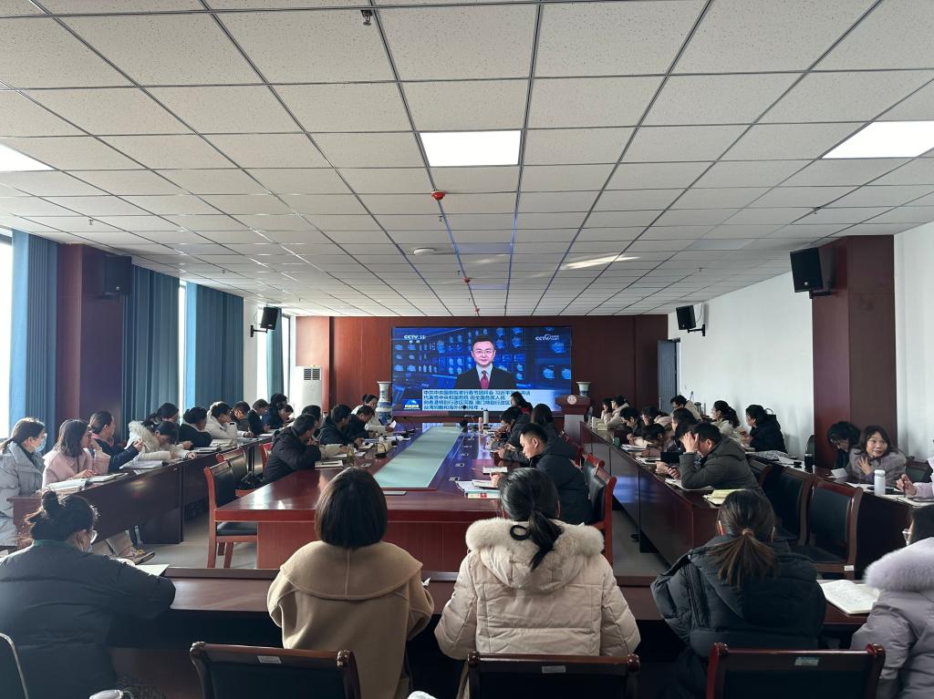 首先,大家集中观看了新闻视频《中共中央国务院举行春节团拜会 习近平发表讲话》。随后,学院党委副书记李娜领学了《习近平:在二〇二四年春节团拜会上的讲话》,讲话中习近平总书记回顾即将过去的癸卯兔年,指出以中国式现代化全面推进强国建设、民族复兴伟业,既是中国人民追求美好幸福生活的光明之路,也是促进世界和平和发展的正义之路,2024年是新中国成立75周年,是实现“十四五”规划目标任务的关键一年,要进一步全面深化改革,着力破解深层次体制机制障碍和结构性矛盾,充分激发全社会创业创新创造活力,为推进中国式现代化注入强大动力,使中国式现代化建设披荆斩棘、一往无前。