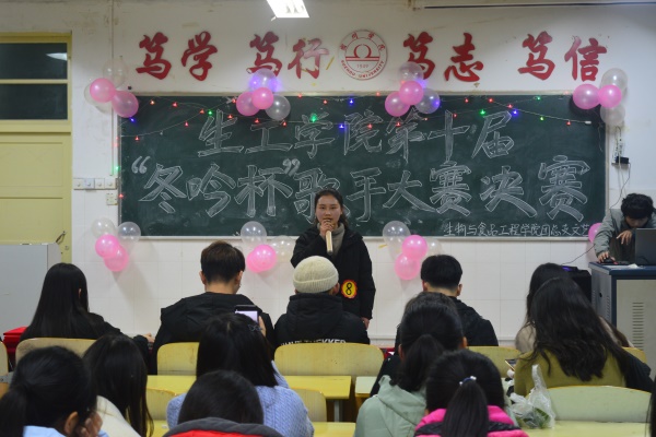 此次比赛初赛以个人演唱的形式进行,在主持人宣布正式开始后,选手依次上台进行自我介绍并完成歌曲演唱,每位选手都展示了自己的独特风采与不凡的实力,赢得台下阵阵掌声。评委们针对选手的音色音准、舞台表现与着装等方面进行打分,同时向选手们提出许多改进意见。经过激烈角逐,共有12名选手进入决赛。决赛采用抽签形式将选手分为六组进行合唱表演,从中选出较为优异的三组选手与另外两名出众的选手进行第二轮对决,从而角逐出最终赢家。合唱部分不仅考验个人唱功,更能看出每位选手的团队合作能力与现场互动水平的高低。合唱阶段,选手们深情演唱的同时多了与大家眼神上与动作上的交流,使整场表演更加生动。评委们也对选手的进步表示极大的肯定。之后的亲友团环节更是把现场氛围推向高潮,评委本着公平公正的原则进行打分。最终,生技一班计逸同学获得了一等奖,食科二班金慧、赵雅茹同学获得二等奖,食科一班徐明慧等三名同学获得三等奖。