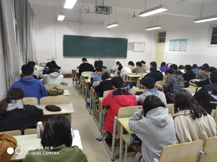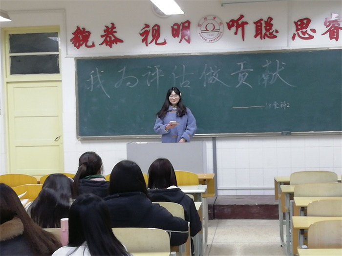 首先主持人秦欣科以良好的台风和富有亲和力的开场白很好地调动了同学们对主题班会的热情。接下来由主持人组织进一步学习了解校情校史,学习本科教学工作审核评估校情问答,利用问答类、竞赛类等形式多样的学习方式。同时,也为同学们提出开展文明课堂宣传教育活动,以本科教学工作审核评估为契机,从细节做起,营造良好的课堂氛围。要求同学们开展“讲礼仪、树风采,展面貌”的活动,向专家展示宿州学子文明、礼貌、优秀的精神风貌。18食品科学与工程2班于实验楼A521教室开展了本次以“我为评估做贡献”的主题团日活动。本次主题团日活动的形式选用组织进一步学习了解校情校史,学习本科教学工作审核评估校情问答,利用问答类、竞赛类等形式多样的学习方式,增强团支部成员做好迎评促建工作的责任感和主人翁意识。