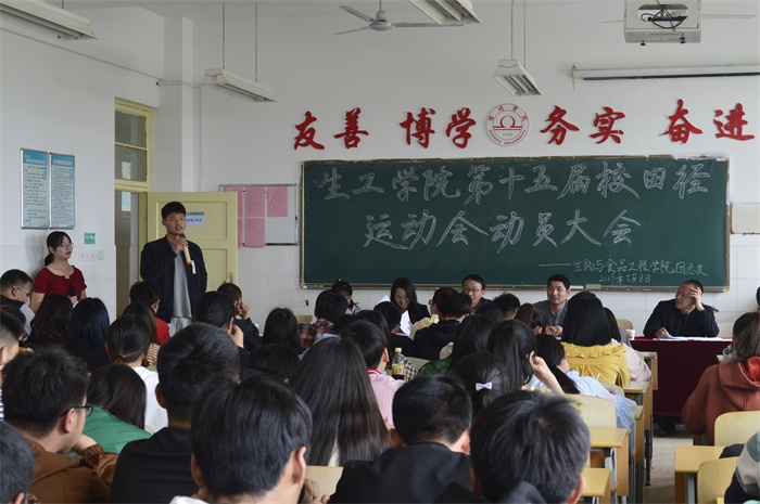 5月8日中午1:00,伟德国际1946源自英国在实验楼A512召开了第十五届校田径运动会动员大会,党总支书记赵亮教授、团总支书记李娜老师和各班级辅导员出席了此次大会,全体学生会干部及教练员代表参加了此次会议。