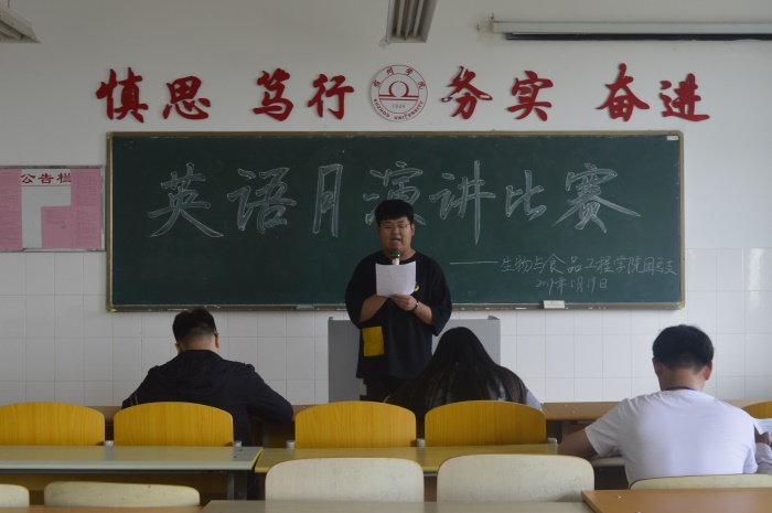 在比赛现场,每一位选手都以流利的英语讲述自己对主题的理解,他们的演讲风格有的自然优雅,有的风趣幽默,赢得现场的阵阵掌声。经过一个半小时的紧张比赛,18生技1班丁雨康获得一等奖, 17食科2班周雅情等获得二等奖, 18食科1班的李亭慧等获得三等奖。