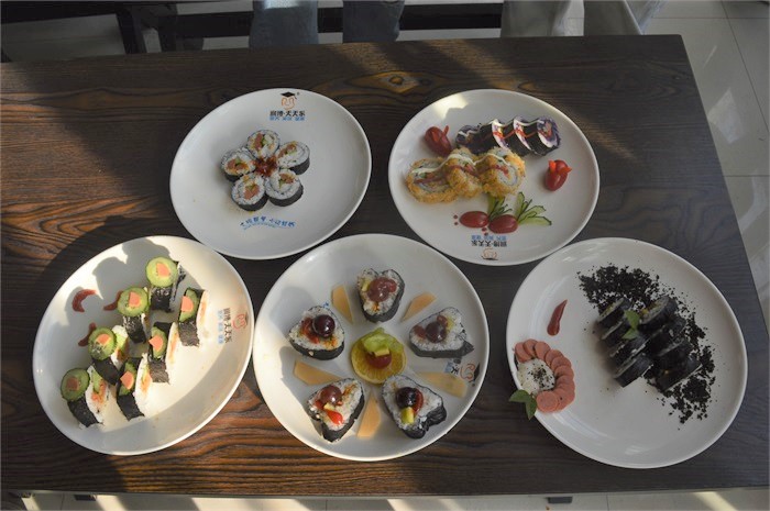 活动开始前,食品协会各成员对会场进行精心的布置。在工作人员的带领下,各参赛小组来到自己的位置。首先,主持人对参赛人员和嘉宾的到来表示欢迎和感谢,并向大家介绍了此次活动的目的和意义,让大家对此次活动有了更近一步的了解。接着,为大家介绍了寿司的种类和制作方法,为活动的进行奠定了良好的基础。获得食材以后,每支队伍都立即的投入到寿司制作的过程中,他们积极讨论如何把寿司做得口感更好,外观更加的新颖别致。30分钟以后,寿司制作完成。每支队伍的代表人员拿着寿司上台展示,并讲解自己队伍寿司的制作创意和内涵。同时,评委根据寿司的外观、味道和创意进行评分。最后,评得一等奖4名,二等奖8名,三等奖11名。