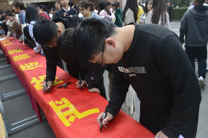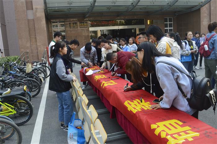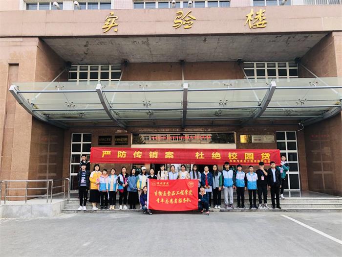 在活动现场,志愿者们悉心的为来往的同学们介绍校园贷及传销相关知识,讲述了一些真实发生的案例并且告诫他们校园贷和传销的危害之大,轻则影响学业、身心健康和家庭幸福,重则让一些大学生走上不归路。希望他们加强个人的防范意识,引导他们树立正确的人生观、价值观和就业观,促使其认清传销的违法犯罪本质,确保自己的人身利益安全。经过志愿者们的介绍,同学们深切感受到传销和校园贷的危害之大,认清了传销的违法犯罪性质、欺诈本质和严重危害,承诺自己会对传销案和校园贷加强警惕意识,然后纷纷在印有“严防传销案,杜绝校园贷”的旗帜上郑重的签上自己的名字并感谢志愿者们的告诫,并表示会自觉抵制传销,杜绝校园贷。经过志愿者对一批批过往的学生们的宣传介绍,活动渐渐接近尾声。同学们拉起横幅在实验楼下合影留念,为活动画上了圆满的句号。