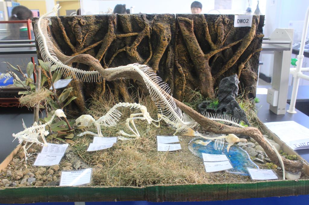 决赛分为标本展示和汇报答辩两个环节。评委们根据大赛评分细则,从立意新颖性、方法科学性、设计创新性、作品美观性以及PPT制作与答辩表现等方面对参赛作品进行考察和评审。最终,金文娟等制作的创新创意标本《水墨廿四记》获得一等奖;王重瑞等制作的创新创意标本《我和我的祖国》、庞雨晴等制作的动物标本《骨骼奇遇》获得二等奖;韩旺旺等制作的动物标本《在田野上》、刘啸宇等制作的植物标本《湿地植物垂直分布探索》、李俊哲等制作的创新创意标本《科技强“军”》获得三等奖。