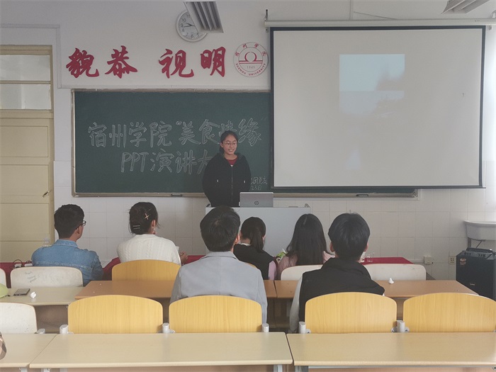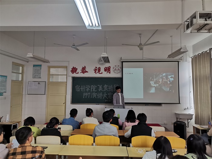 11月23号上午9点,由共青团宿州学院委员会主办,宿州学院学生团体联合会、食品科学协会共同承办的宿州学院“美食情缘”PPT演讲大赛于宿州学院实验楼A521举办,共有77组参赛选手参加此次比赛。