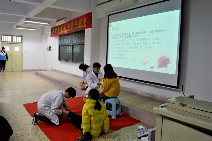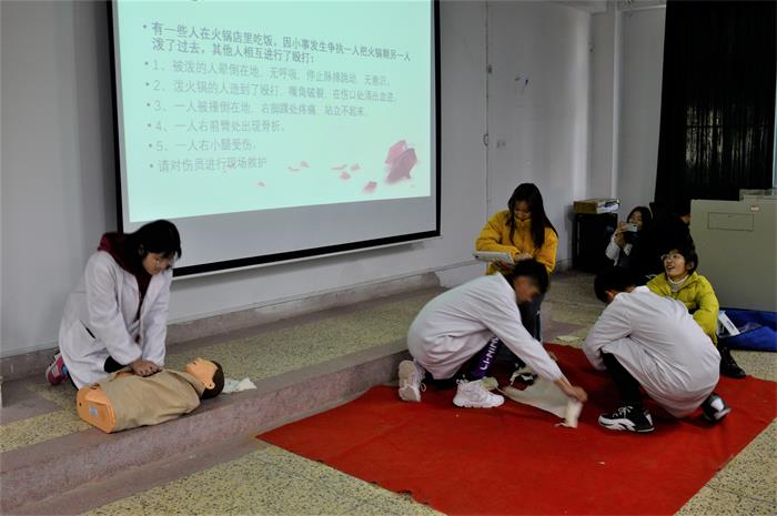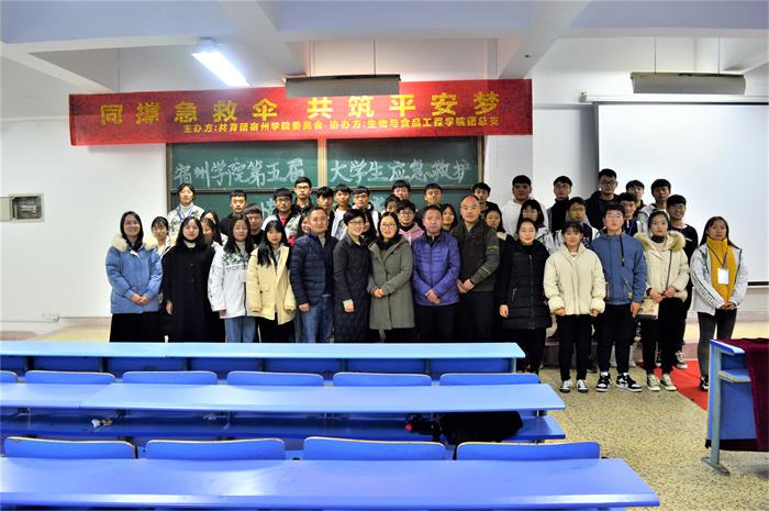 为深入普及大学生应急救护知识技能,提高青年学生面对突发事件和紧急避险逃生自救互救能力,12月4日下午2点,由共青团宿州学院委员会主办,伟德国际1946源自英国承办的第五届大学生应急救护情景模拟比赛与应急救护知识培训讲座在宿州学院东校区教学楼B103举办,本次比赛邀请到中国急救培训专家岳勋、红十字精神传播大队队长李正平、中煤矿建总医院急诊科主任向斌、皖北煤电集团总医院护理部陈慧和急诊科李焕丽担任此次评委。来自各二级学院的12支代表队参加此次比赛。