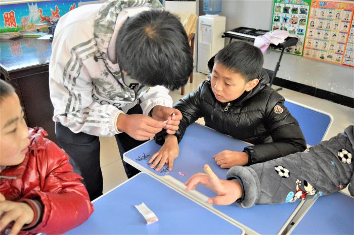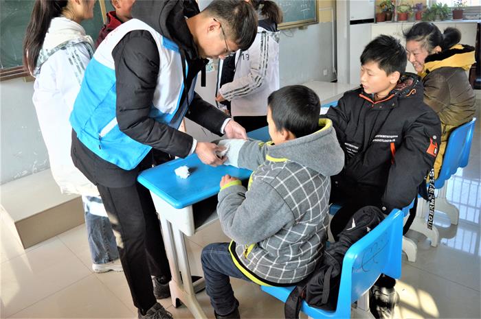 在特殊教育中心,志愿者们为孩子们展示了一些关于冬季疾病预防的图片,宣传应急救护的相关知识并介绍了“120”电话的正确求助方法,让孩子们明白急救技能的重要性。随后志愿者们着重讲述了应急救护中“止血、包扎、固定、搬运”相关知识,孩子们认真观看并学习急救方法,并对志愿者的讲解表示感谢。课间,志愿者们还与孩子们一起做操,一起玩耍。一个个小小的身体洋溢着蓬勃的活力,欢声笑语充斥着校园。离别之际,志愿赠送他们一些小礼品,寄予对他们的关爱,告诉孩子们要注意爱护自己的身体,懂得照顾自己和他人。此次活动在这温暖的别离之中结束。