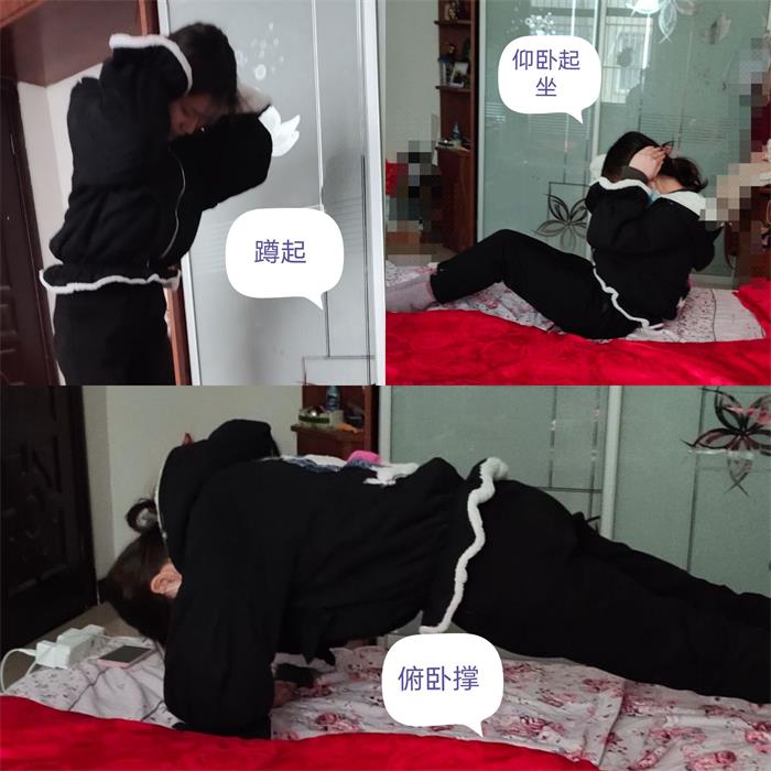 本次活动参加的同学需要居家完成规定运动内容:56个仰卧起坐、1个俯卧撑、2个蹲起。(寓意:五十六个民族“一国两制”全国人民共同携手为祖国加油,为世界加油,共同为抗疫奋斗)。同学们积极行动起来,因地制宜,积极开展运动,将镜头前运动的身姿展现出来,表达了坚定战胜疫情的决心。在展示锻炼自己的同时,起到了积极的宣传教育作用,对全院师生居家保持积极、乐观的心态,养成良好的健身习惯起到积极的引导作用。