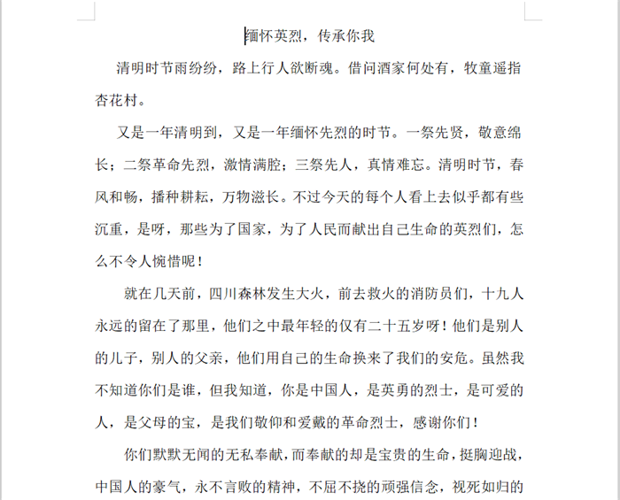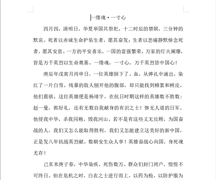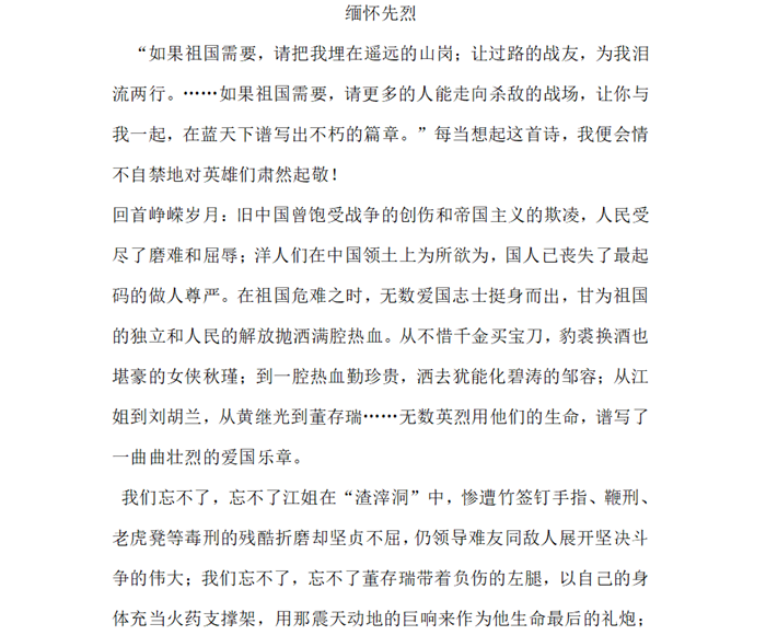 疫情当下,正逢清明节,作为广大的青年,无论是对英勇无畏的革命烈士,还是对抗击疫情牺牲的白衣天使,我们都心存敬畏。同学们通过文字的方式将新闻里报道和身边为抗击疫情牺牲的白衣天使以及为建设祖国做出伟大牺牲的革命烈士的感人事迹描写出来,抒发了对他们的缅怀和感谢之情。最终,19生物技术(中外合作)段义兰获得一等奖,18生物技术1丁雨康等获得二等奖,19药学许娜等获得三等奖。