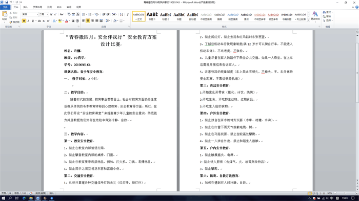 本次活动是以安全教育为主题的进行方案设计。活动初期,同学们认真准备参赛作品,严格按照标准模板设计策划方案。一部分同学注重于方案的实用性,详细写出方案实施步骤,以确保整个策划的实施;一部分同学注重于方案的简洁性,通过文字与图片直观地将安全知识表达出来。最终,18食品科学与工程冯艳等10名同学荣获一等奖;19生物技术1张妍等15名同学荣获二等奖;19食品科学与工程满运双等6名同学荣获三等奖。