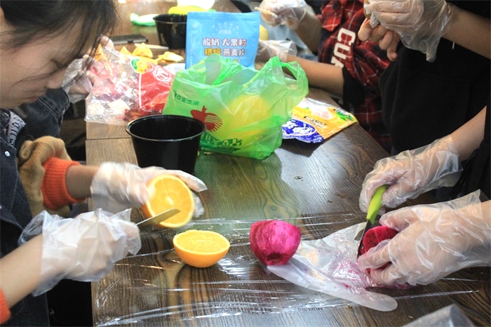 比赛开始前,工作人员将提前准备好的酸奶、保鲜膜、塑料盒和勺子分到每一参赛小组。比赛时,各组参赛人员分工明确,有条不紊的进行着作品创作。有的将不同颜色的水果一层一层的摆放,有的将水果切成各种形状进行装饰。随着时间的推移,她们逐渐完善自己的作品。完成作品后,参赛选手提交作品并进行命名,由评委进行打分。之后,同学们进行桌面的清洁并共享自己的劳动成果。评分结束后,工作人员统计分数进行汇总。最终,20药学聂羲等2人荣获比赛一等奖、20食品质量与安全史峰等6人荣获比赛二等奖、19食品科学与工程何元洁等9人荣获比赛三等奖。