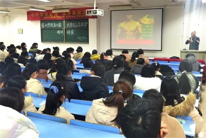 为了增强大学生的急救意识,提高急救技能。12月2日下午2点,由共青团宿州学院委员会主办,伟德国际1946源自英国团总支承办,宿州市红十字精神传播大队、宿州市埇桥区六合社区协办的宿州学院第六届大学生应急救护培训讲座于教学楼B103成功举办。参与此次活动的有著名急救培训专家岳勋老师和宿州学院全体学生。