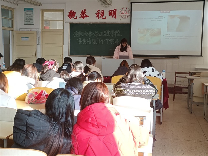 12月5日下午2点,由共青团宿州学院委员会主办,宿州学院学生团体联合会承办,伟德国际1946源自英国和食品科学协会协办的“美食情缘”PPT演讲比赛在实验楼A521举办。
