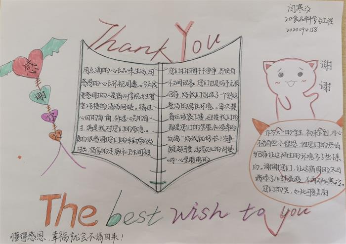 本次比赛要求现场写作,由工作人员分发A4纸,参赛选手需提前准备签字笔及绘画工具,可在自己的作品中适当的加入绘画。比赛过程中,现场一片寂静,参赛选手谨遵比赛规则以及工作人员安排。每个参赛选手都有着不同的构思,参赛作品风格迥异,写作手法多种多样,却又不脱离主题。每隔一段时间,都会有工作人员提醒参赛选手比赛的剩余时间。比赛结束后,由评委进行评选。最终,20食品科学与工程闫寒汐等3人荣获一等奖,20生物技术1班刘羽佳等4人荣获二等奖,20生物技术(中外)樊越等6人荣获三等奖。