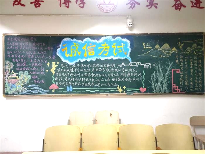 此次黑板报评比活动,有利于提高了我院的学风建设,使我院学子进一步了解考风考纪,认识到考试的严肃性和违纪的危害性,创造良好的学习氛围。同时也希望同学们能够积极备考,诚信应对考试,考出水平,考出风格,为本学期的学习生活交上一份满意的答卷。