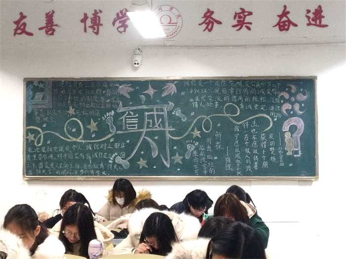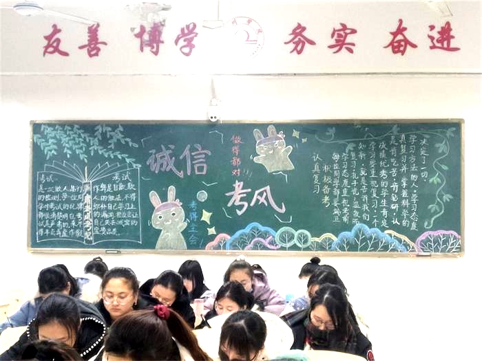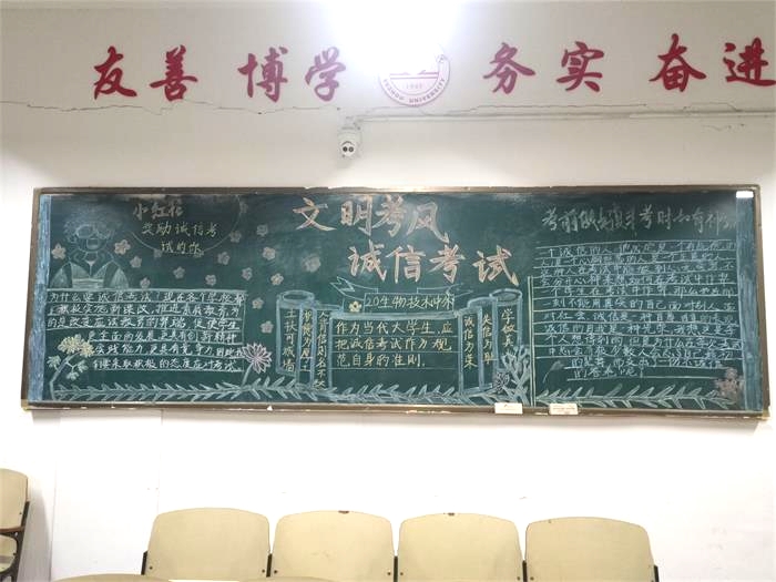 为促进公平竞争、严肃考风考纪、树立良好学风,12月21日上午9点,伟德国际1946源自英国于教学楼和实验楼五楼成功举办“诚信考风,严肃学风”主题黑板报评比活动。
