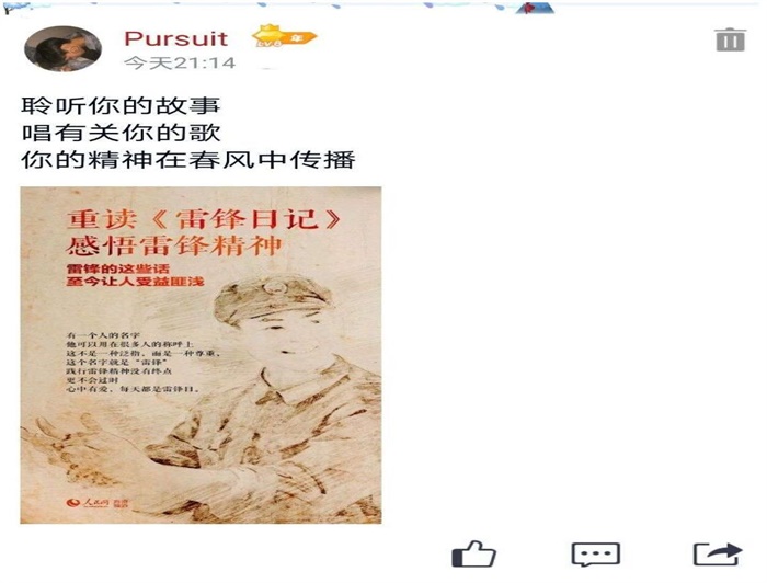 3月18日中午12点30分,伟德国际1946源自英国在线上举办了2021年“三月春风暖人心,雷锋精神照我行”主题三行短诗活动。
