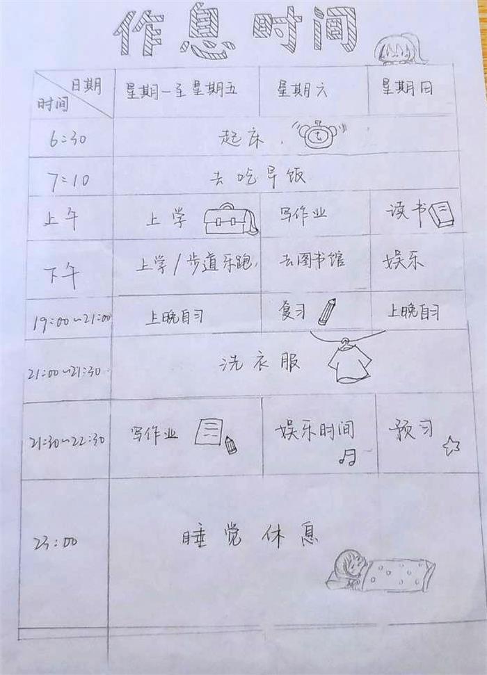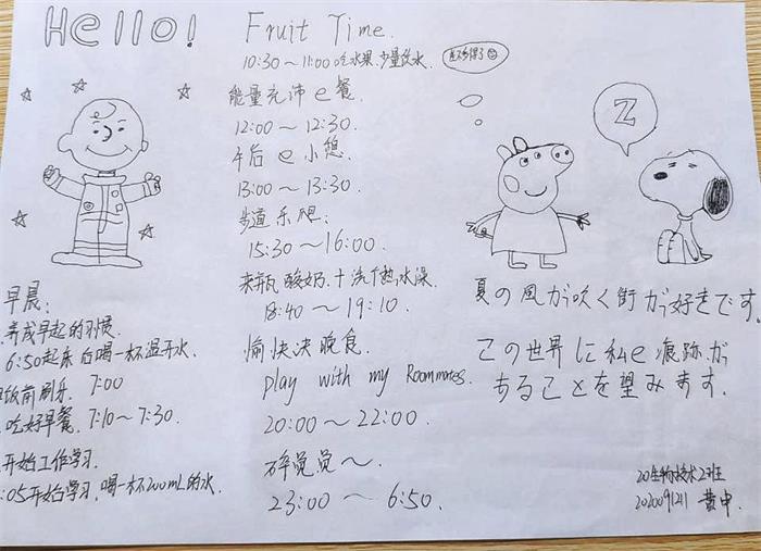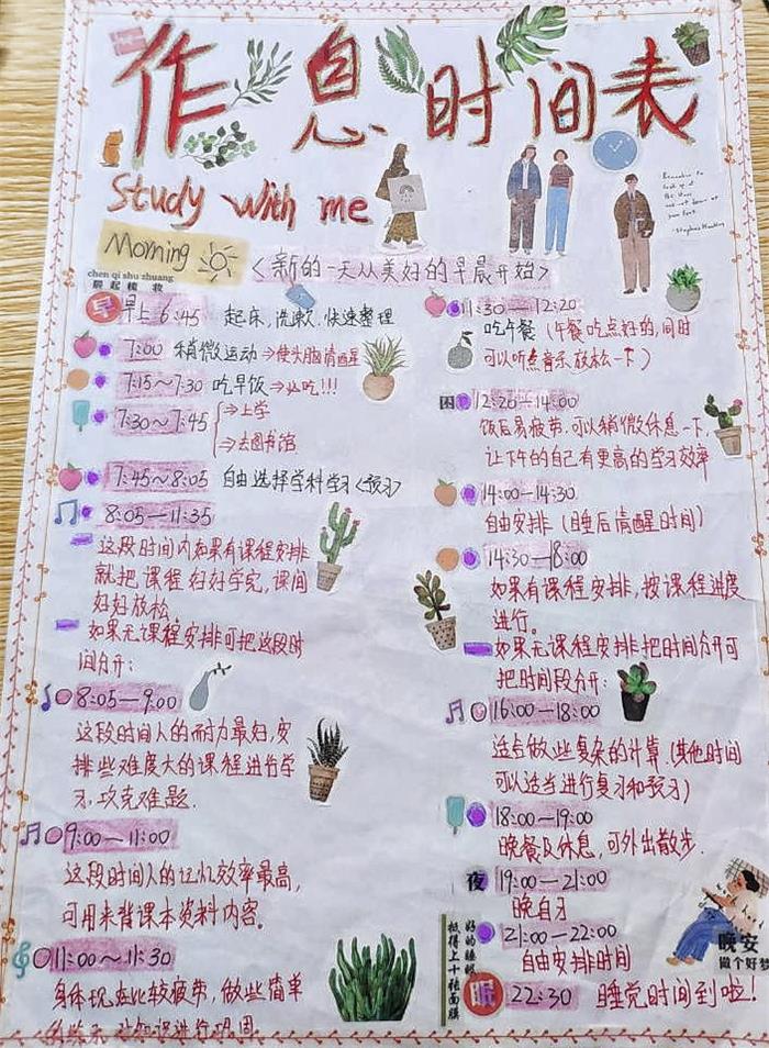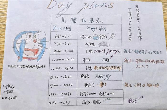 本次活动的主题是“慎独自律,健康生活”,其目的在于提升同学的健康自律意识,让同学们更好的认识健康作息的意义。通过表格设计的形式,让同学们设计出自己认为最健康规范的作息表,同时也让同学们将自律作息铭记于心。活动作品设计形式有A4手绘版和Word制作两种,作品内容要求健康、积极、自律,布局合理美观。评委们从美观度和表格内容两方面进行评分。经过评选,最终20药学王乘乘等6人获得一等奖;19生物技术(中外)武雅雯等10人获得二等奖;18食品科学与工程2班周继密等12人获得三等奖。
