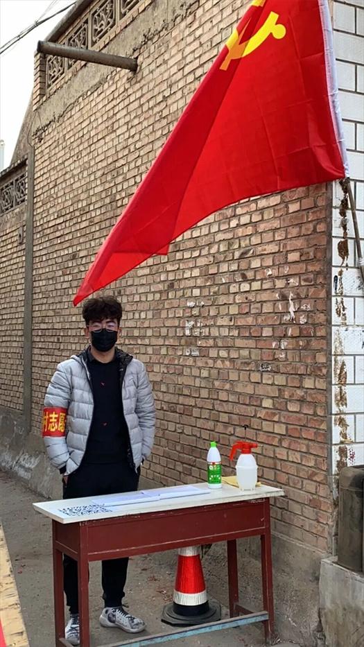 新型冠状病毒感染的肺炎疫情来势汹汹,让这个冬天显得格外寒冷。但病毒无情人有情,举国上下,不少人为抗击疫情无私奉献,其中18生物技术1班的丁雨康同学为村口疫情宣传以及疫情防控献出了一份力量。早晨在村口值班、禁止无关人员进出和登记每个手持证明进出的人是他每天的任务。还会对外来人员和车辆按规定进行检查、消毒,会劝解村民无必要不外出。有时还会为村民运送物资,尽量满足村民的合理要求。只要人人都贡献自己微薄的力量,我们就能一起扛过这次给中国的挑战。
