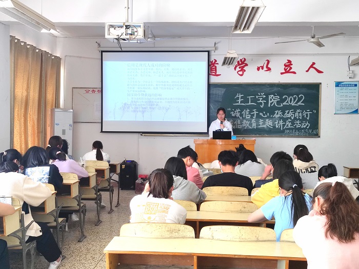 “诚信”作为我国的优良传统文化,是我们每个人都应该具备的品质,对我们新青年来说尤为重要。活动伊始,同学们有序进场,并将手机调制为静音或振动模式。活动过程中部门成员向同学们介绍助学贷款的相关知识和申请的相关程序,增强同学们的诚信意识。演讲内容深刻贯彻《中共中央、国务院关于进一步加强和改进大学生思想政治教育的意见》,并列举了一个个关于大学生申请助学贷款却没有及时还款遇见的问题。同学们仔细听讲,认真思考,并为演讲者的精彩发言送去阵阵掌声。活动结束,同学们与演讲者一同合影,留下了美好的记忆。