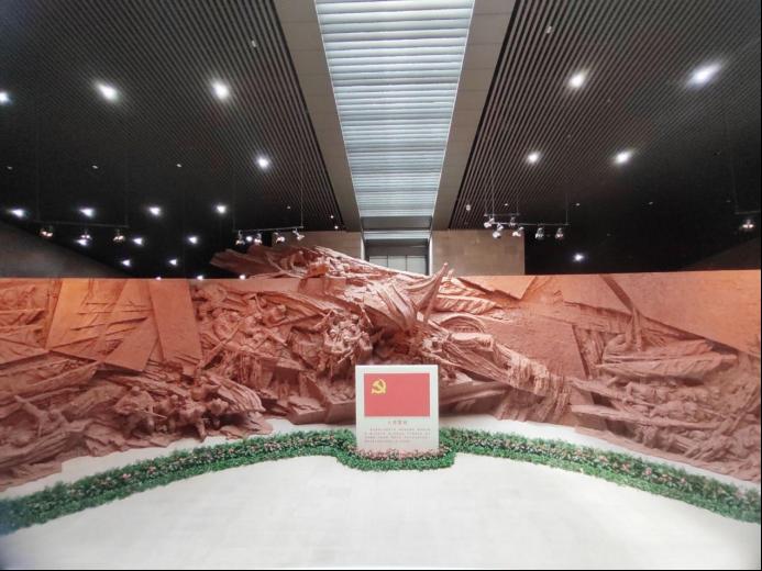 一进入馆内,一幅巨大的浮雕展现在我们眼前,栩棚如生地刻画着战士们奋勇渡江的情景,他们靠顽强的意志和不怕牺牲的精神战胜了敌人,英勇事迹让我们肃然起敬。那时我们热血沸腾,仿佛自己也成为了其中的一名战士,向前冲锋杀敌,勇往直前。