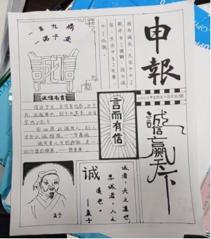 本次比赛,参赛形式为制作手抄报的方式,选手们围绕“诚信进校园”主题进行创作,手抄报内容积极向上,内容丰富且生动,富有创意,情感真挚,主题凸显清晰。“诚信为人之本”、“伟大人格的素质,重要的是一个诚字”,这些简洁而富有哲理的名言让人受益匪浅。