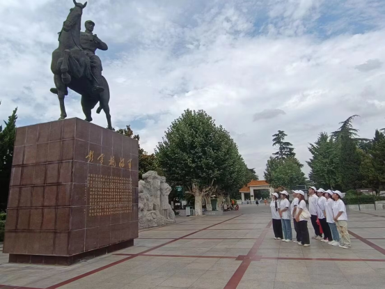 陵园的中轴线处矗立着彭雪枫将军的汉白玉雕像,雕像英姿飒爽,栩栩如生,让人仿佛看到了当年的文武双全的儒将风采。团队成员整齐地低头哀悼,为革命英魂献上菊花,这一束束菊花不仅仅表达了团队成员们对先烈的哀思,还在成员们心里留下了红色的种子。