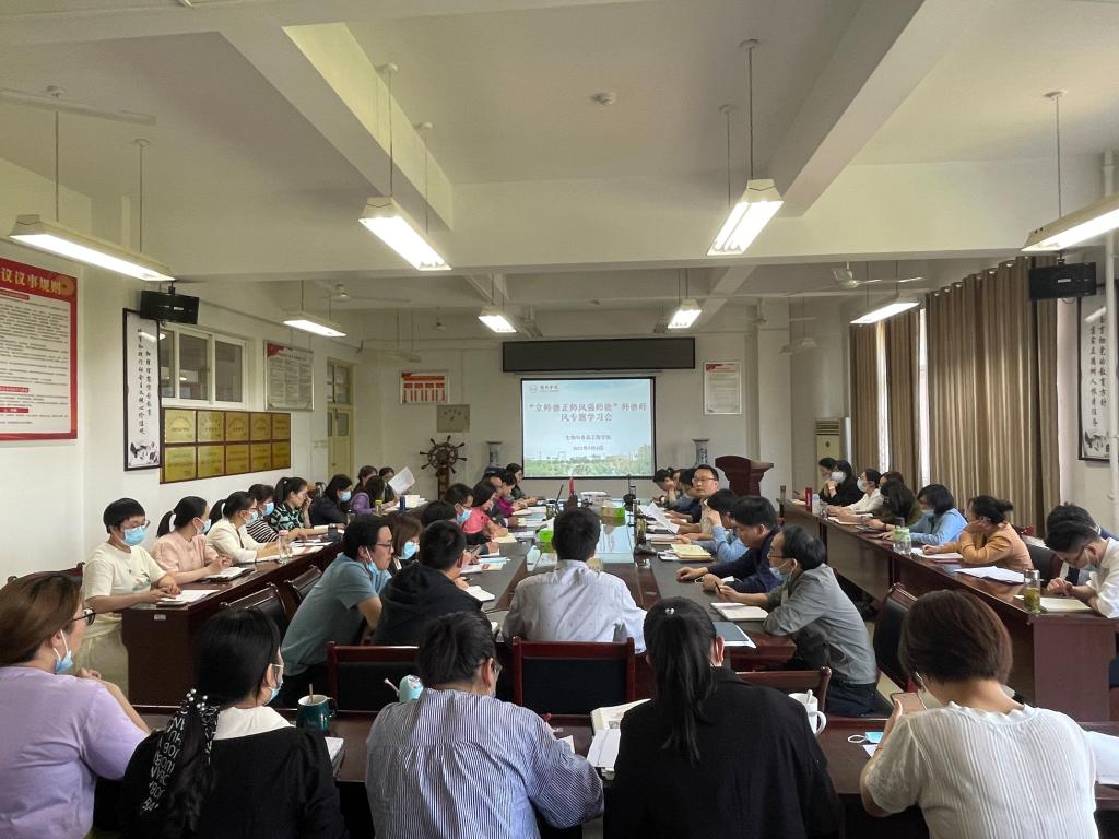 会上,赵亮首先带领全体教职工学习习近平总书记关于教育的重要论述,进一步学习《新时代高校教师职业行为十项准则》;张兴桃带领大家学习《宿州学院教师职业行为负面清单及失范行为处理实施细则(试行)》(党教工字〔2020〕1号);翟科峰带领大家学习了《宿州学院师德重大问题报告制度》(党教工字〔2019〕3号)、《科研诚信案件调查处理规则(试行)》(国科发监[2019]323号)、《科学道德与学术规范学习资料汇编》;王海潮宣读教育部网站公开曝光的违反高校教师职业行为十项准则典型案例和安徽省高校教师师德失范行为警示教育案例。
