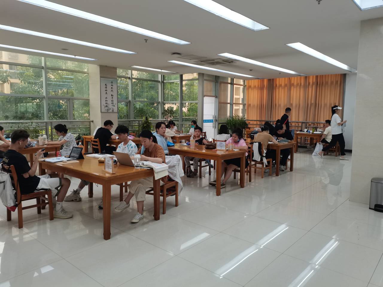 在过道读书的阿姨也吸引了我们的注意,她手捧书籍,沉浸在知识的海洋中,不被外界打扰。她说“其实在哪学习看书都可以,只要你想学。屋里大多是学生,在做题、看书,座位很紧缺,我只是看书,在哪都行,我从家里带的小板凳,一本书一杯水,累了就起来走走活动活动。”是啊,学习不是任务,没有年龄限制,学习也不是看你记住多少公式、单词,在知识的海洋中感受到乐趣,发现知识的美,探索生命的无限,学点东西的满足感,这就是学习的收获。所以,我们可以随时随地地学,随心所欲地学,观察一朵花如何开放,感受五线谱上的跳跃,学一门语言,学一样乐器,探索大自然的神奇和美丽,等等。知识无处不在,乐趣也无穷无尽。是对知识的渴望和热爱,让我们不断去思考、去感悟、去期待每一个明天。