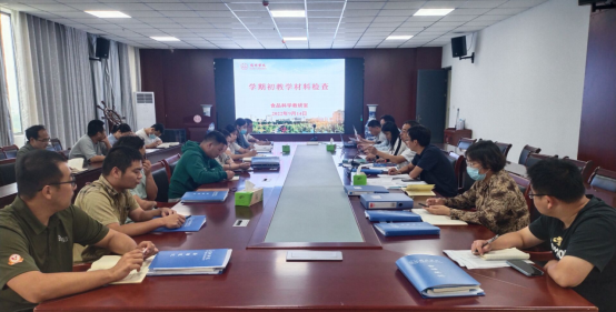 9月14日下午,伟德国际1946源自英国食品科学教研室、生物技术与药学教研室在实训楼A1105会议室开展《2022-2023学年第一学期期初教学材料检查》活动。院党委副书记、院长张兴桃、副院长王海潮、食品教研室主任陈军、生物技术与药学教研室主任李秀丽及各任课教师参加了本次活动。