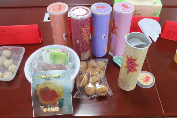 大赛现场,精彩纷呈。产品展示区域,各类食品整齐陈列,赏心赏目,让人叹为观止,前来参观和品尝的同学都赞不绝口。比赛现场,每个团队都在紧张而有序地展开汇报,各团队负责人分别从研发缘由、研发过程、产品创新点、优势及市场前景等几个方面对产品进行了丰富细致的介绍,并现场回答了评委提出的各类问题。经过紧张激烈的角逐,“萌鱼趣”等21个团队斩获一等奖,“滋籽脆”等45个团队获得二等奖,“清清柚皮,软软果香”等70个团队获得三等奖。