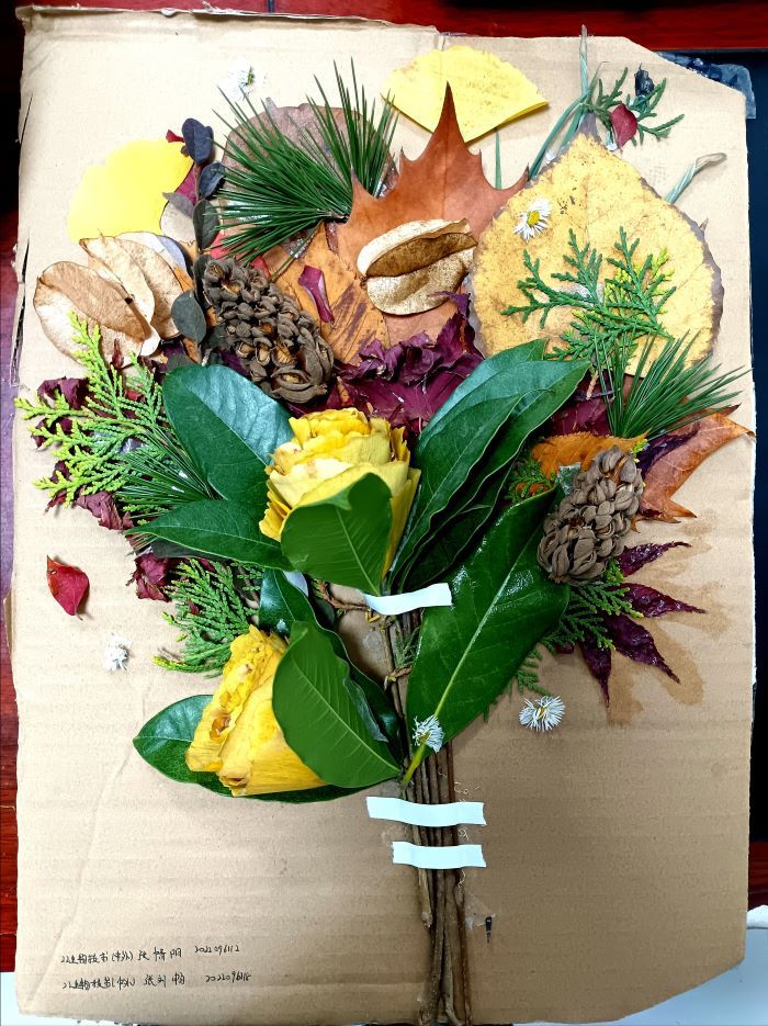 在这次活动中,同学们搜集了大小不同、形态各异的树叶,大胆尝试不同的画面设计,适当裁剪树叶,让落叶变成有生命的小动物。在这些作品中,我们身临其境,仿佛置身于绵延的枫树林中,枫叶像一团团正在燃烧的火焰,灵动而让人陶醉。有的作品精致,有的作品简单,但它们都蕴含着秋天的味道。经过最终评定,21生物技术中外合办周少婷、21生物技术2班蔡旭玉、21食品质量与安全陈雪婷荣获一等奖,22食品质量与安全方琪、22生物技术中外合办蔡广婉等荣获二等奖,22生物技术中外合办李敬业、21生物技术1班王雨凤等荣获三等奖。