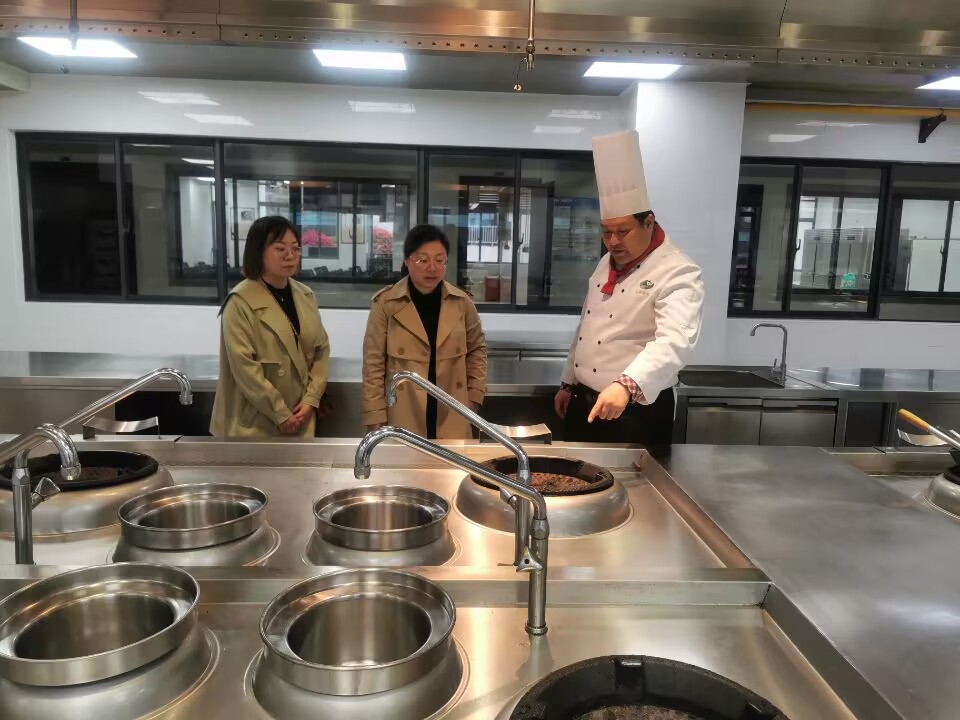 黄玉海主任首先详细地介绍了烹饪与营养教育专业的专业定位、专业特色、师资力量等基本情况。然后带领参观了中式菜肴加工实验室、中式面点加工实验室和焙烤加工实验室等,详细介绍了每个实验室的布局、设备的构造和功能,并根据我们的预制菜加工实验室的规模和功能给予了宝贵的建议和意见。