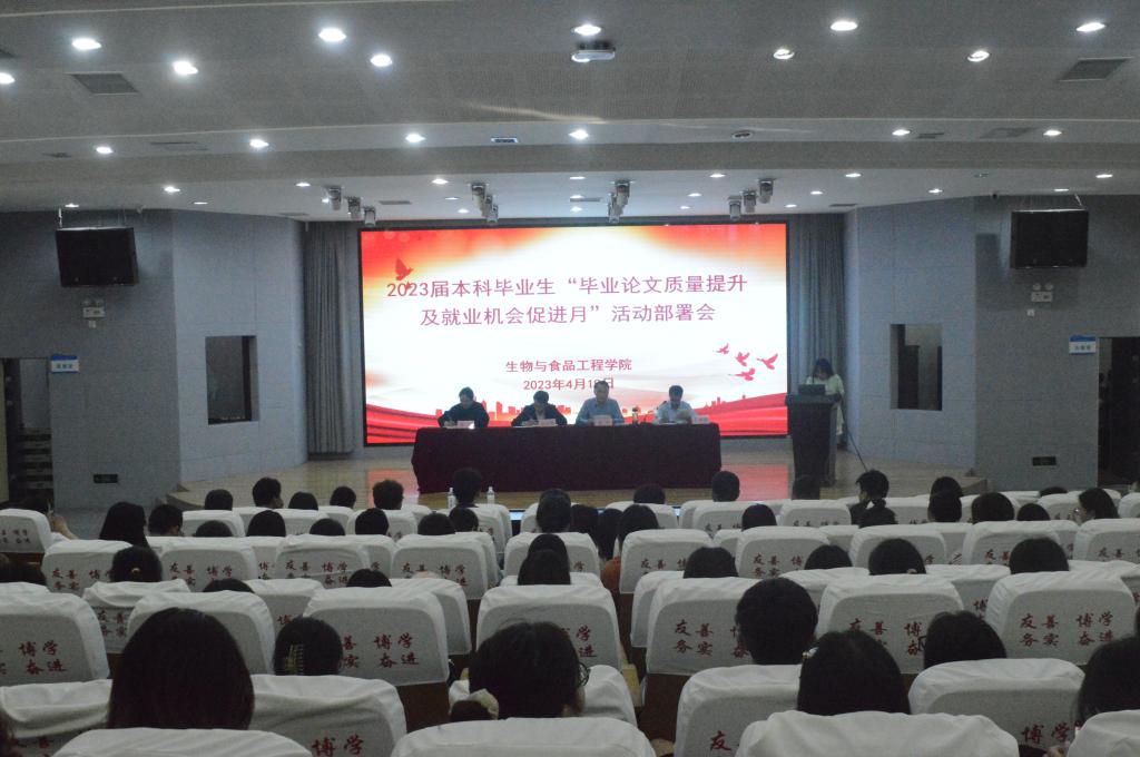 会上,党委书记赵亮对本次主题教育活动月强调几点要求,一是毕业实习和毕业论文指导老师要组织好本组学生文献阅读和交流、毕业论文(设计)撰写专题指导和毕业论文质量推进等活动,切实提高2023届毕业论文质量。对因特殊原因不能返校的同学,及时通过线上的形式给与高质量的论文指导。二是毕业实习和毕业论文指导老师要主动为大学生提供就业宣传和教育,充分发挥专业教师熟悉专业、了解学生的优势,全员、全程参与就业工作的指导。三是毕业班辅导员要通过走访宿舍、主题班会、谈心谈话等形式,充分了解学生就业诉求,建立毕业生就业意向摸排、就业情况跟踪等相关信息工作台账。四是毕业班辅导员要根据毕业生求职意向地域、行业、单位类型等特点,科学灵活安排线上和线下的“双驱动”就业指导和服务活动,重点做好优质企业进校宣讲活动,不断提高平台搭建的质量。要通过QQ群、微信群加大为毕业生推送岗位,推送就业信息量的力度。五是学生党员、学生干部要发挥示范带头作用,协助毕业论文指导老师指导老师和毕业班辅导员组织好“毕业论文质量提升及就业促进月”各项活动,模范完成学院各项工作要求。六是对学院组织的“毕业论文质量提升及就业促进”各项活动,所有同学原则上不得缺席,确保“毕业论文质量提升及就业促进月”活动取得实效。