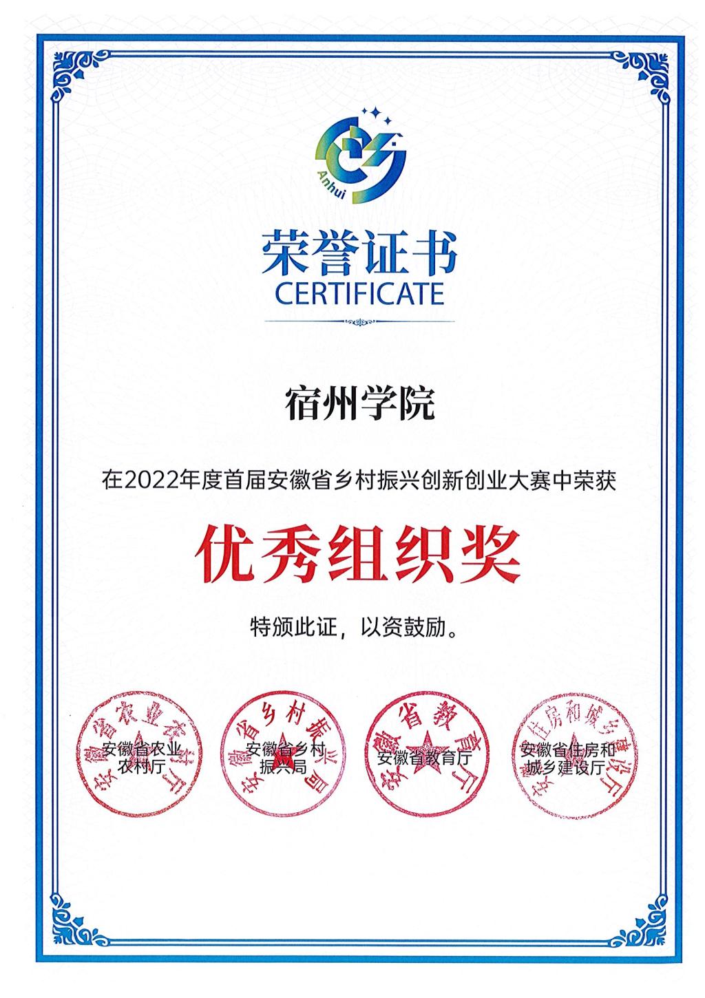 近日,由安徽省农业农村厅、安徽省乡村振兴局、安徽省教育厅、安徽省住房和城乡建设厅等单位联合主办的首届安徽省乡村振兴创新创业大赛颁奖典礼在合肥举行,我校伟德国际1946源自英国院长张兴桃、分团委书记吴长昊及学生代表受邀参加。