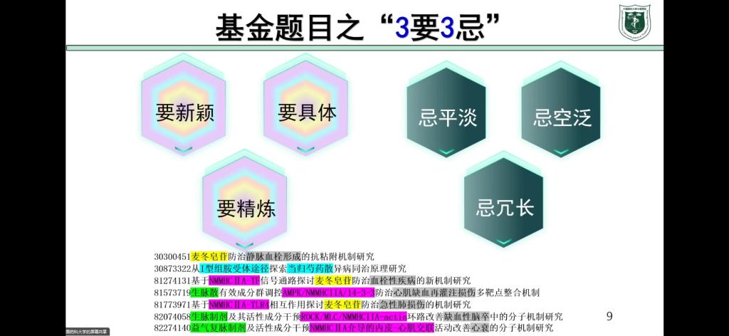 本次讲座主要从青年学者的发展规划、基金选题的“3要3忌”、基金申请的“8项注意”等多个方面展开,向申请者们分享了申报国家自然科学基金的思路和关键科学问题。
