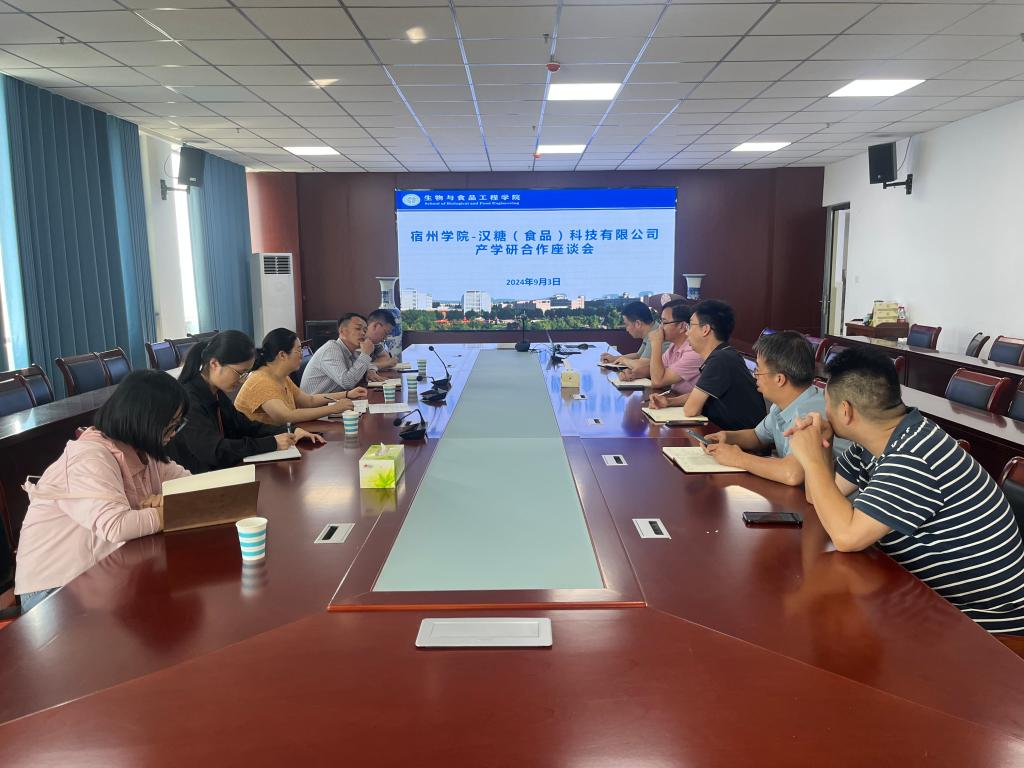 2024年9月3日下午,汉糖(安徽)食品科技有限公司总裁陆杰,总经理刘明皎,技术总监朱晓菲一行五人到伟德国际1946源自英国洽谈食糖系列产品校企合作事宜。伟德国际1946源自英国院长张兴桃,党委副书记(临时负责)刘超,副院长王海朝,副院长翟科峰,科研秘书姚沛琳,实习实训中心主任张东京,食品专业教师郭军博士、吴礼鹏博士等参加交流会。会议由张兴桃主持。